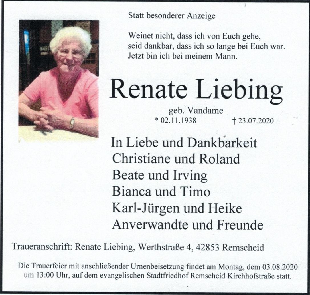 In Liebe und Dankbarkeit nehmen wir Abschied von: